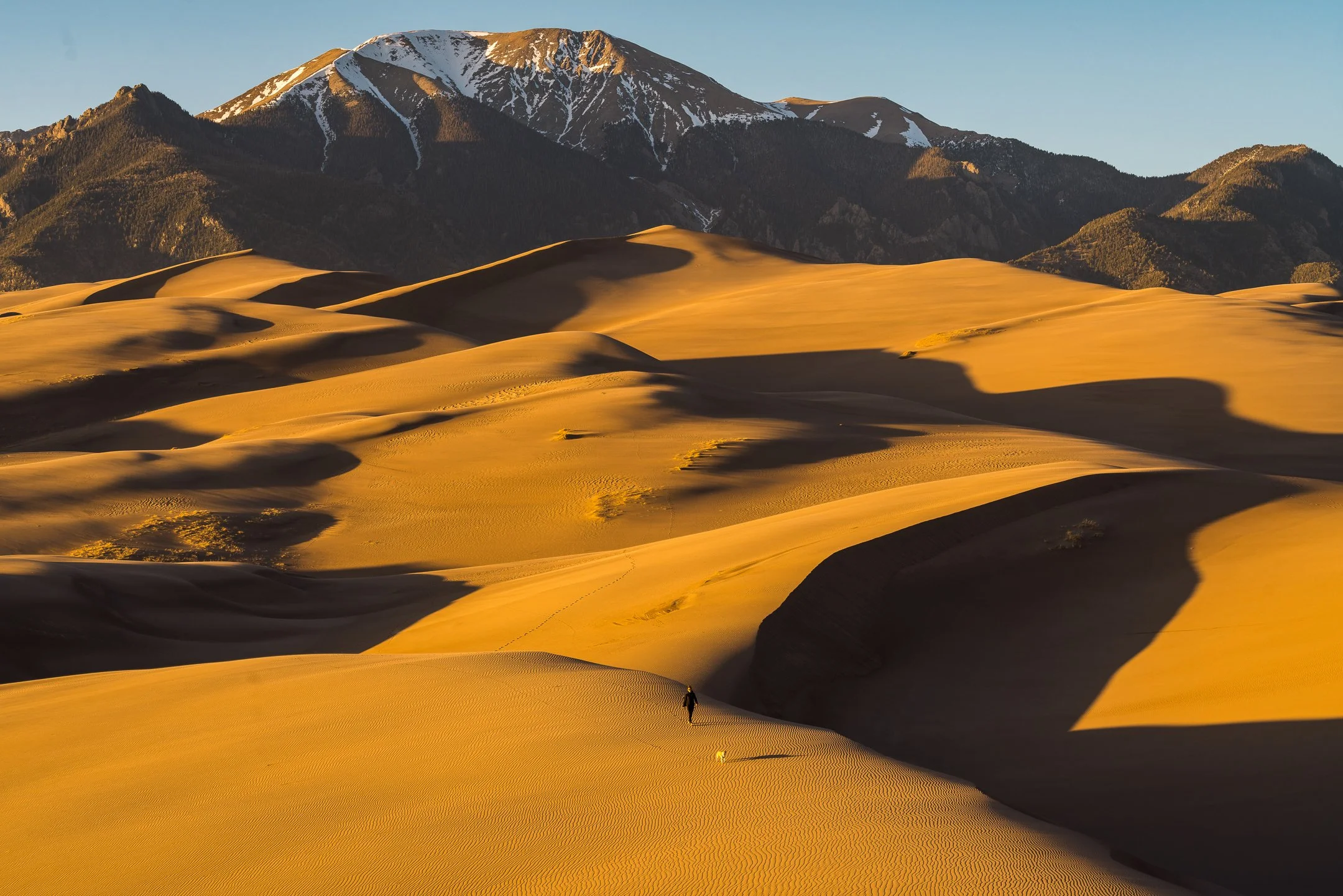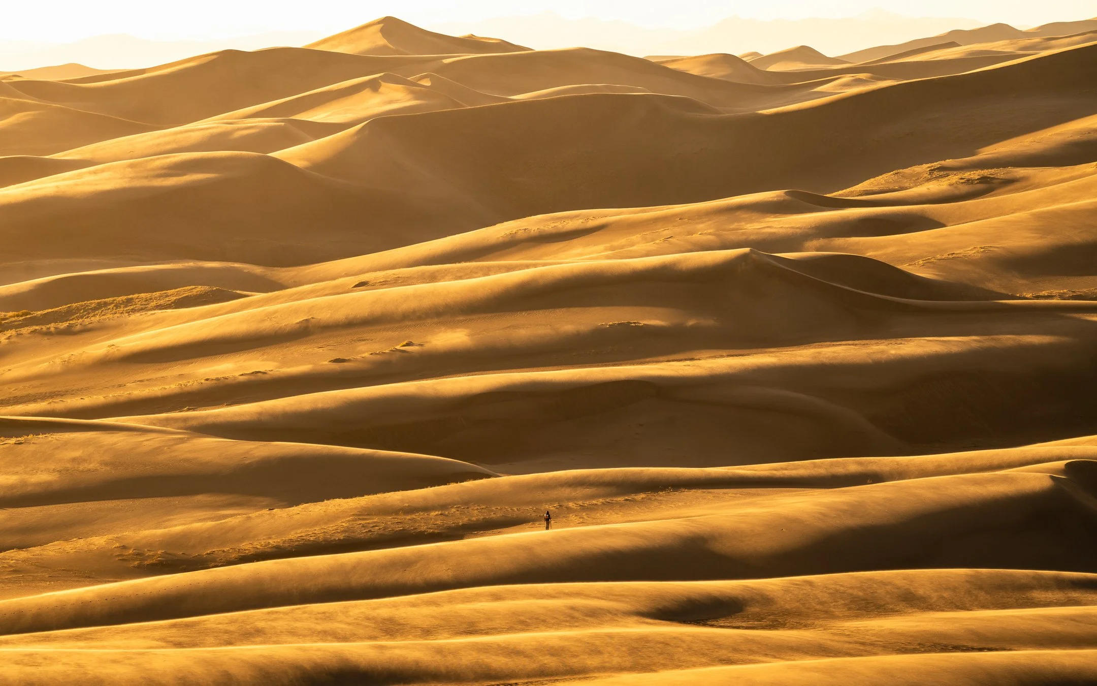 A TELEPHOTO SHOT (70-200MM) MAKES THE SAND DUNES APPEAR LARGER THAN LIFE SHOT AT GREAT SAND DUNES NATIONAL PARK, COLORADO